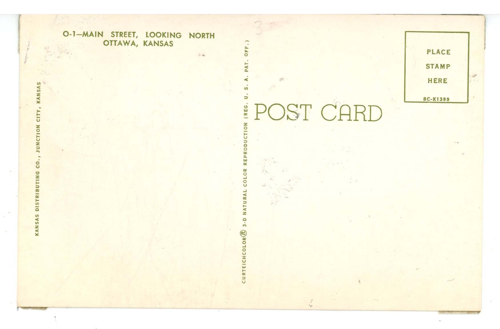KS - Ottawa. Main Street looking North ca 1957