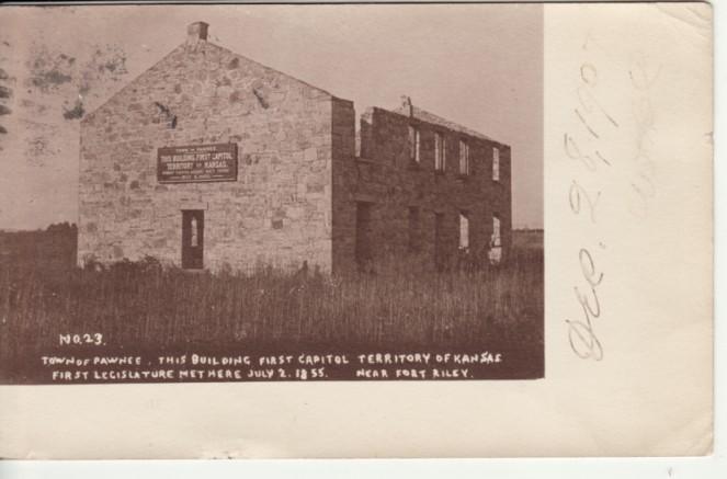 KS PAWNEE 1st CAPITOL TERRITORY 1907 postcard