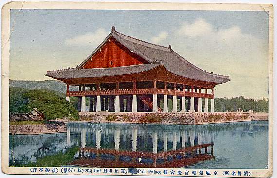 Kyong hol Hall in Kyong Pok Palace. Seoul, Korea. Published by Hinode-Shoko of Seoul, Korea. Poor to average condition.