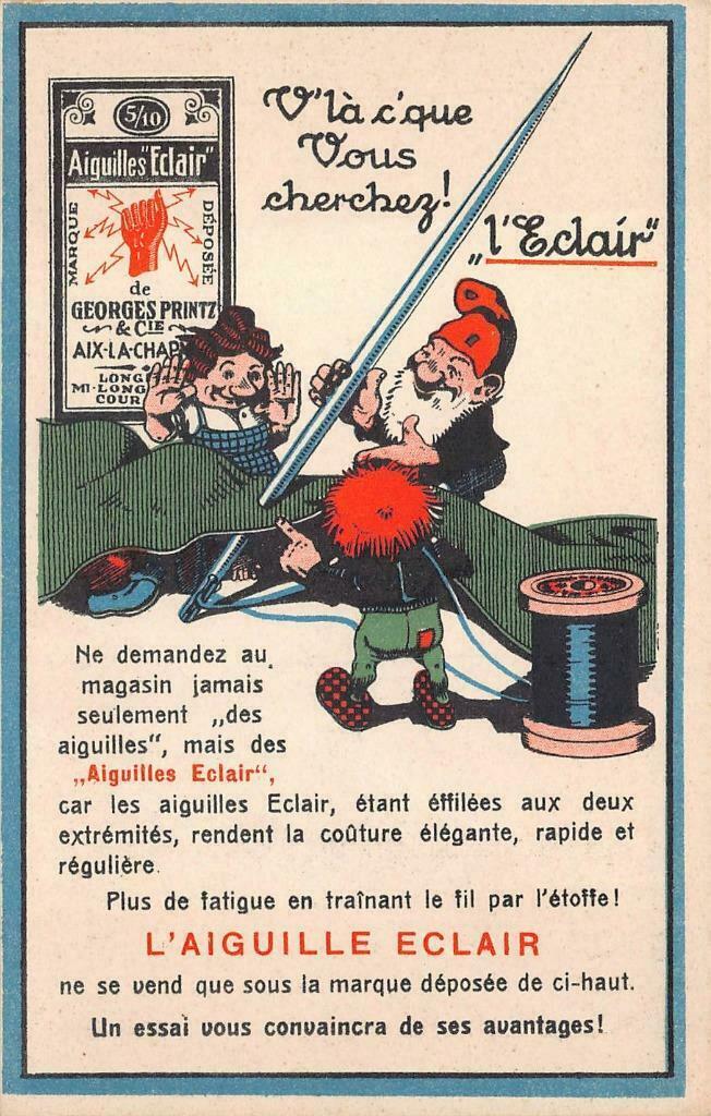 L' AIGUILLE ECLAIR SEWING NEEDLE THREAD FRANCE ADVERTISING POSTCARD (c. 1920s)