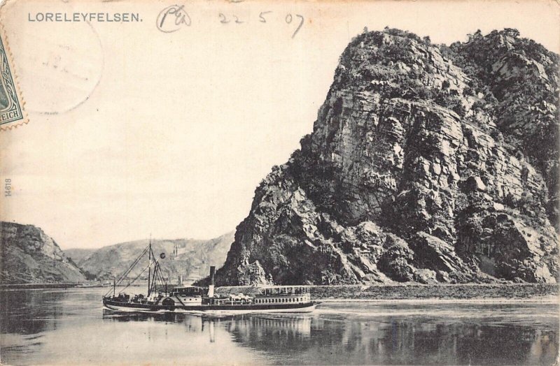 L012 Germany 1907 Loreleyfelsen Steamboat vintage postcard