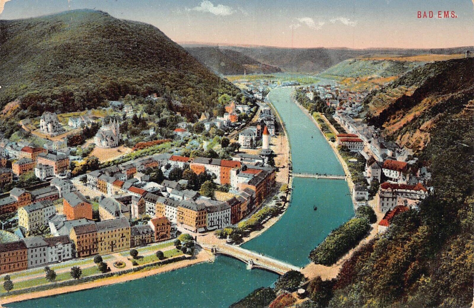 L017 Germany Bad Ems River Bridge Panoramic View vintage postcard