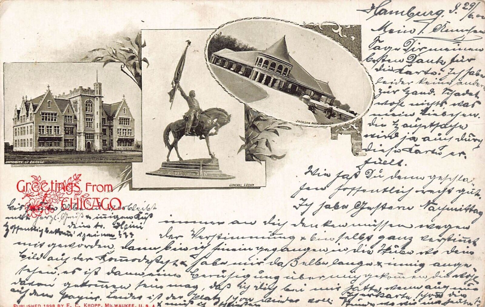 L035 US Greeting from Chicago 1900 litho vintage postcard This item is listed via xdm.it software