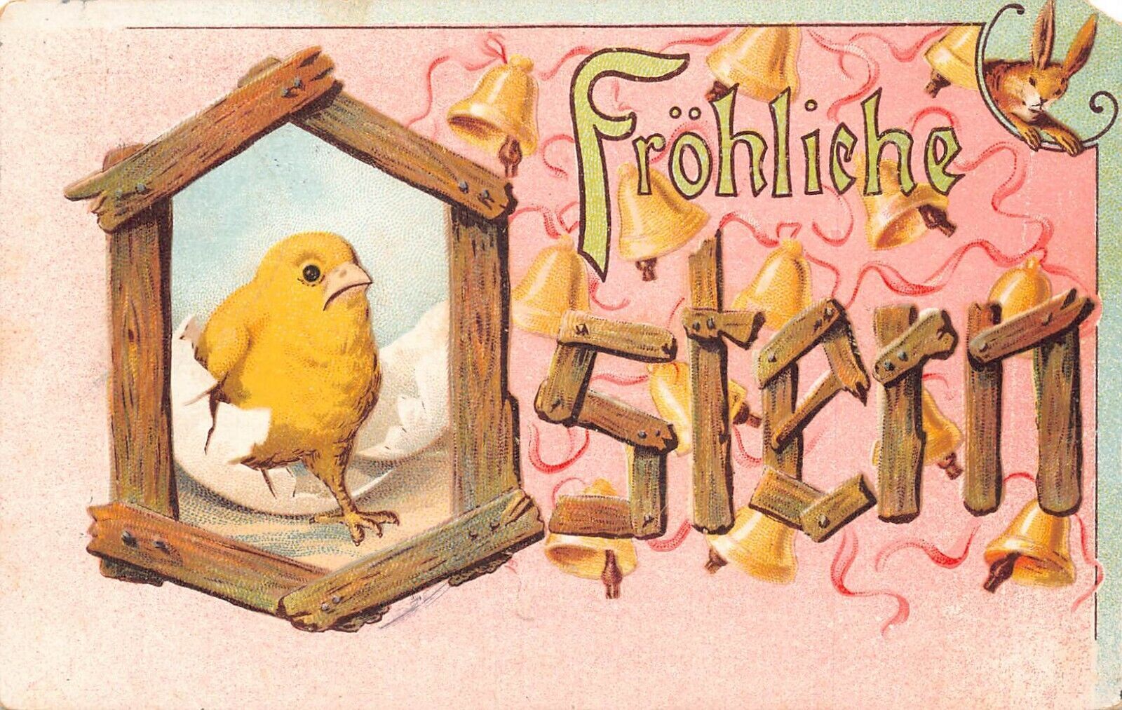 L066 Happy Easter Chicken Rabbit 1905 vintage postcard This item is listed via xdm.it software