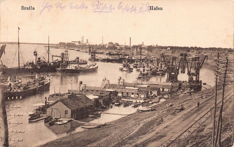 L109 Romania 1918 Braila harbor ships boats WWI vintage field postcard