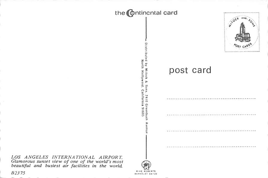 LA International Airport - California Grade: 1 Category: Continental Size Postcard, Approx 4 in x 6 in (10 cm x 15.25 cm) Product Size: Continental size: 4X6 inches (10.5 cm x 15 cm) Grading Scale: Grade 1 = P ... Read More