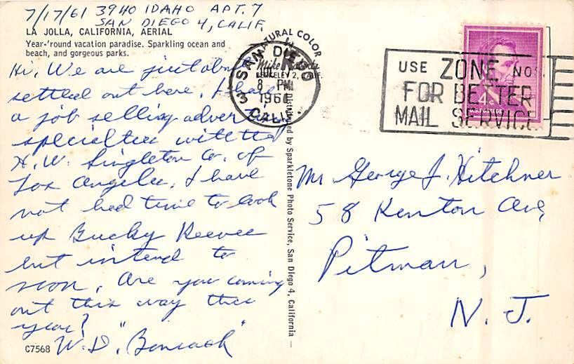 La Jolla La Jolla CA Postcard - 1961