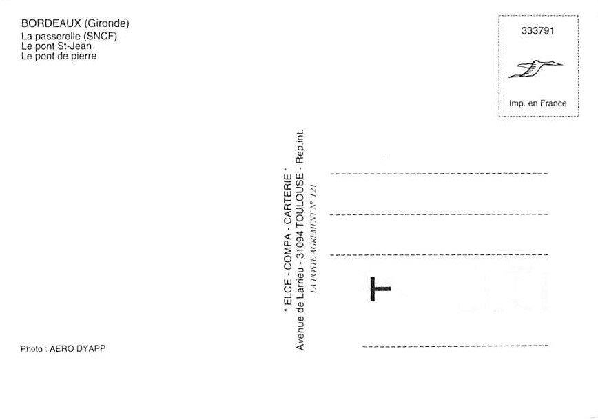 La Passerelle , Bordeaux Postcard - View Images Grade: 1 Size: C - Continental Size Postcard - approximately 4 inch X 6 inch (15 CM X 10.5 CM) Grading Scale: Grade 1 = Perfect corners Grade 2 = Very Minimal cor ... Read More