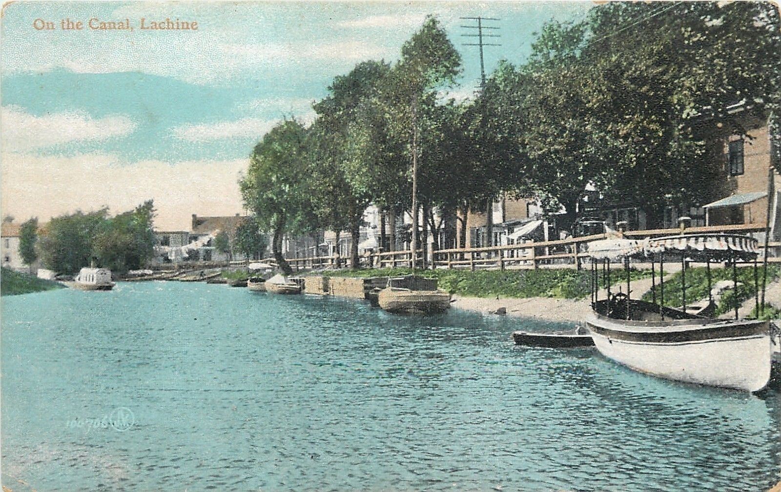 Lachine Michigan~Big Excursion Boats Along the Canal c1907 Postcard
