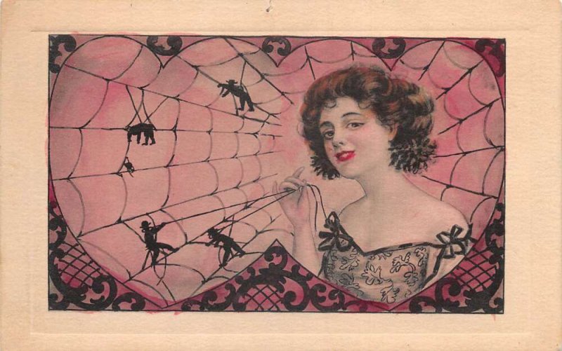 Lady Capturing Men in Spider Web Vintage Postcard AA75738