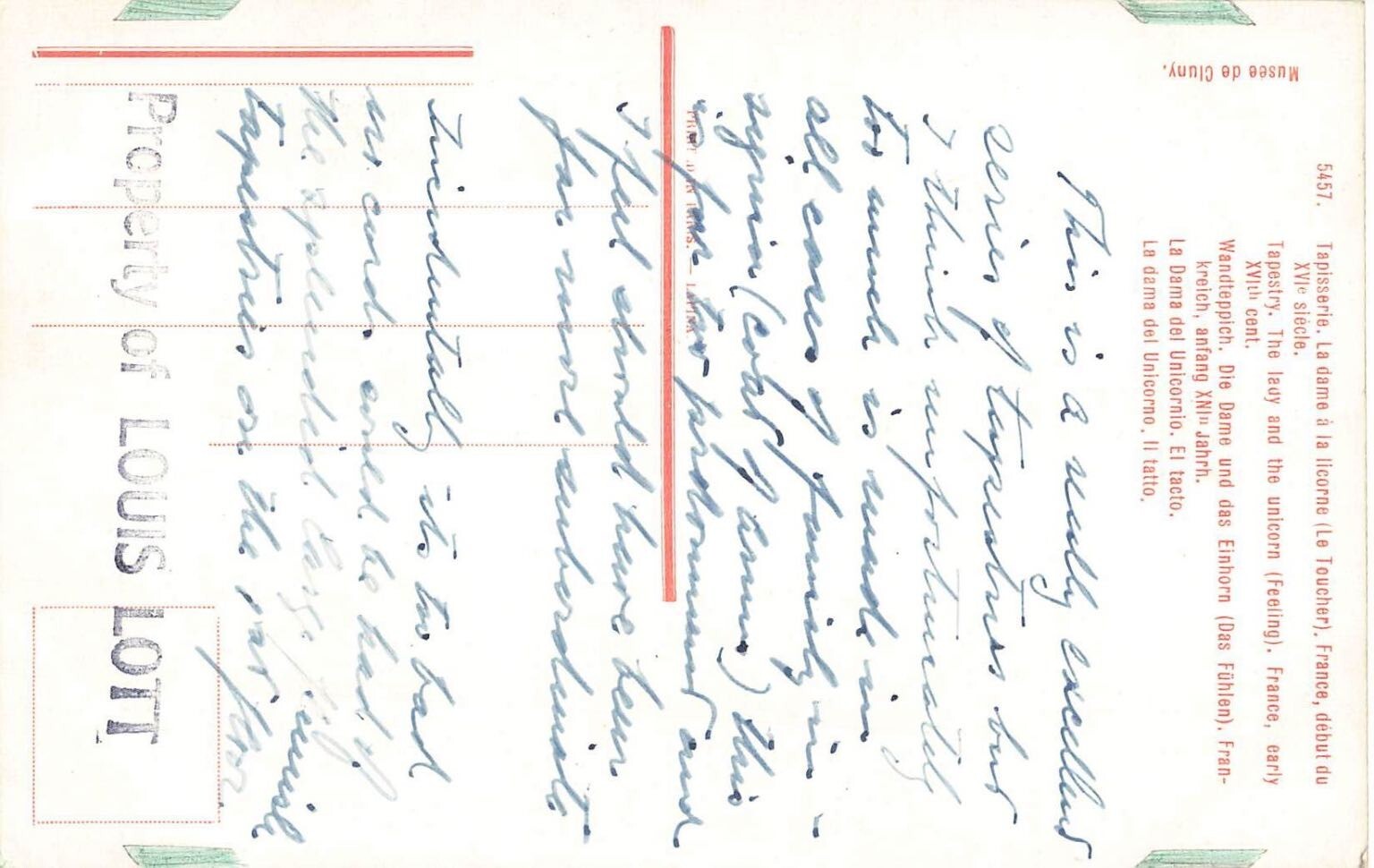 Lady & Unicorn Tapestry Postcard - Musee de Cluny Medieval Art