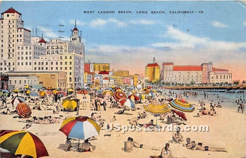 Lagoon Beach - Long Beach, CA Postcard - 1945