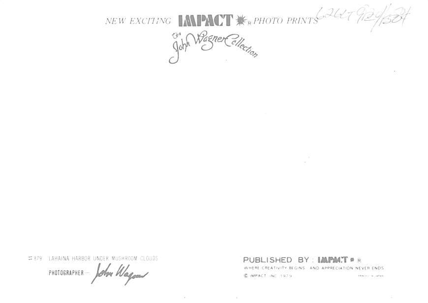 Lahaina Harbor Lahaina Harbor, Under Mushroom Clouds Postcard - View Images Grade: 1 Size: {{Product Field 5 (Size Regular or Continental)}} - Continental Size Postcard - approximately 4 inch X 6 inch (15 CM X 10 ... Read More