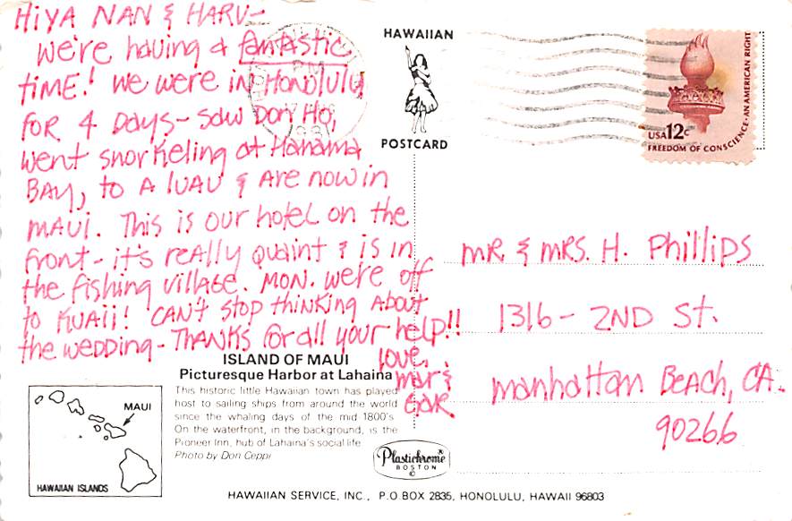 Lahaina Harbor - Maui, Hawaii Grade: 3 Category: Continental Size Postcard, Approx 4 in x 6 in (10 cm x 15.25 cm) Product Size: Continental size: 4X6 inches (10.5 cm x 15 cm) Grading Scale: Grade 1 = Perfect c ... Read More