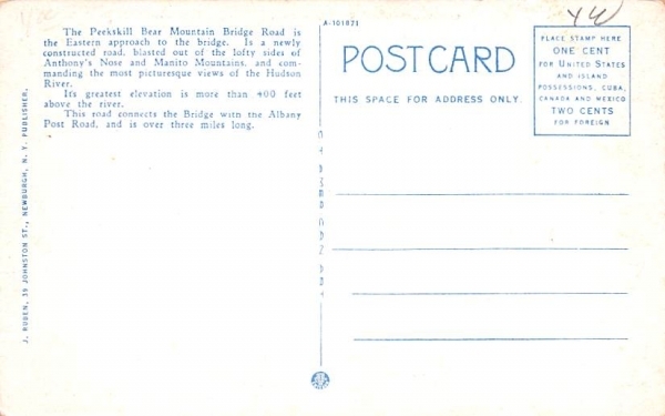 Lake at the Dance Hall Bear Mountain, New York Postcard Postal Date: Postal Used Unknown Grade: 2 Size: Regular Size Postcard - approximately 3 1/2 inch x 5 1/2 inch (9 CM x 14 CM) Grading Scale: Grade 1 = Pe ... Read More