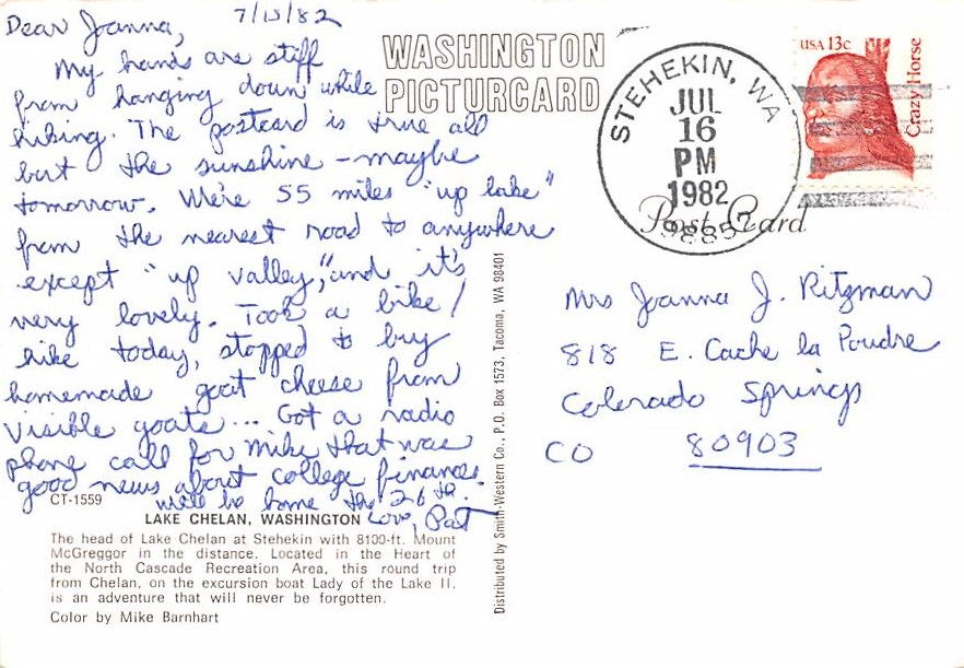 Lake Chelan - Washington Grade: 1 - marking on front Category: Continental Size Postcard, Approx 4 in x 6 in (10 cm x 15.25 cm) Product Size: Continental size: 4X6 inches (10.5 cm x 15 cm) Grading Scale: Grade ... Read More