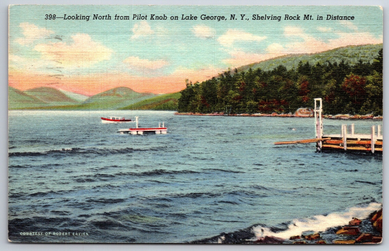Lake George New York~Lake North @ Pilot Knob~Shelving Rock~Linen Postcard
