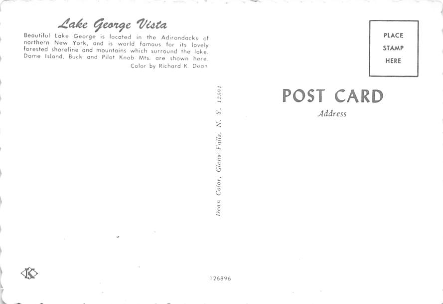 Lake George Vista - New York Grade: 1 Category: Continental Size Postcard, Approx 4 in x 6 in (10 cm x 15.25 cm) Product Size: Continental size: 4X6 inches (10.5 cm x 15 cm) Grading Scale: Grade 1 = Perfect co ... Read More