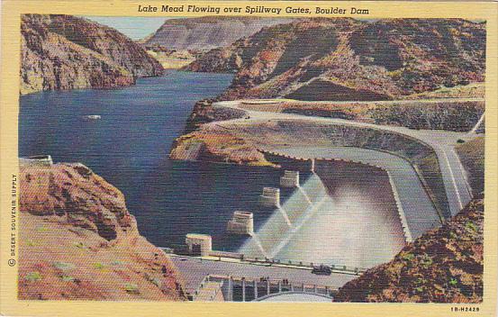Lake Mead Flowing Over Spillway Gates Boulder Dam Nevada Curteich