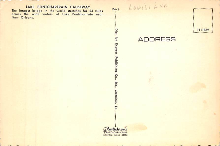 Lake Pontchartrain Causeway , New Orleans Postcard - View Images