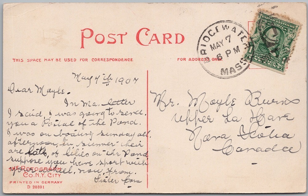 Lake View Bridgewater Massachusetts USA 1907 Postcard H83Please zoom into and look closely at the front and back photos to view condition and feel free to send me a message if you have any questions. Thanks kindly for viewing, D