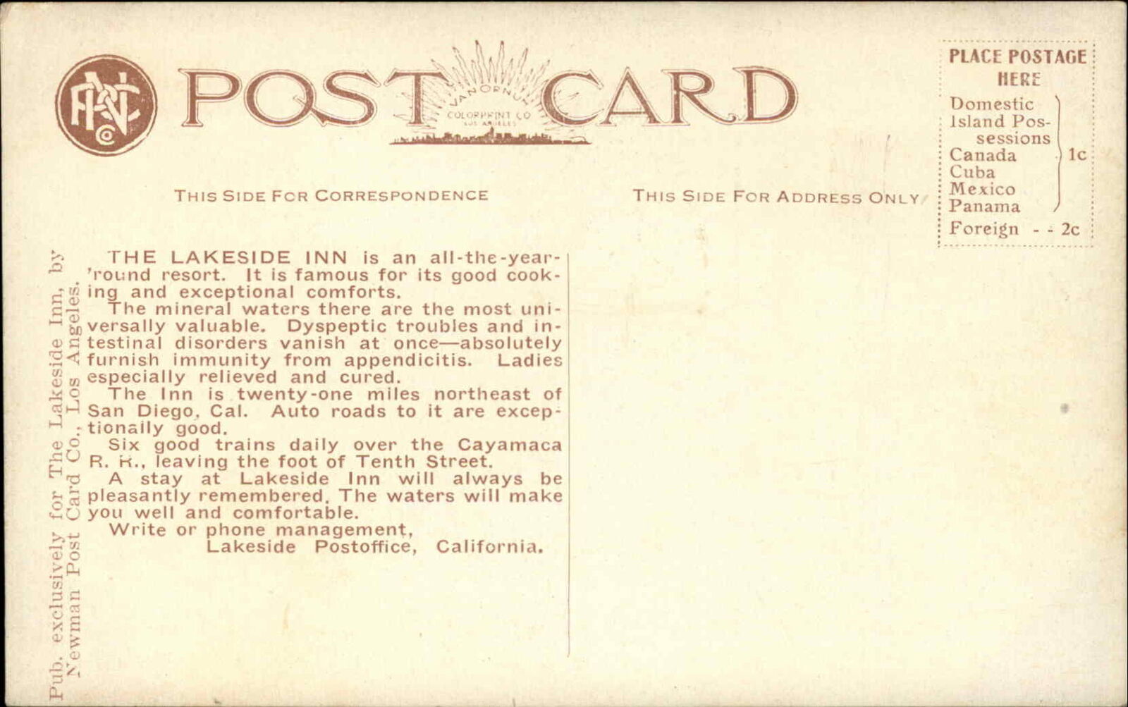 Lakeside California CA Lakeside Inn c1910 Vintage Postcard