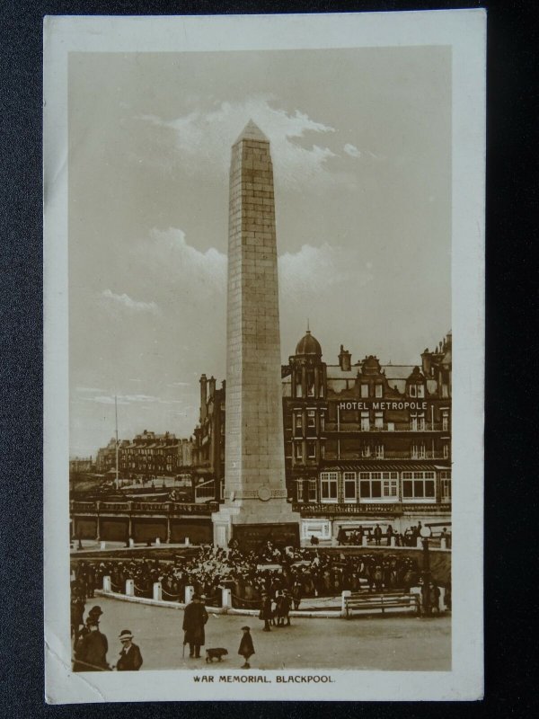 Lancashire BLACKPOOL WAR MEMORIAL & HOTEL METROPOLE c1925 RP Postcard