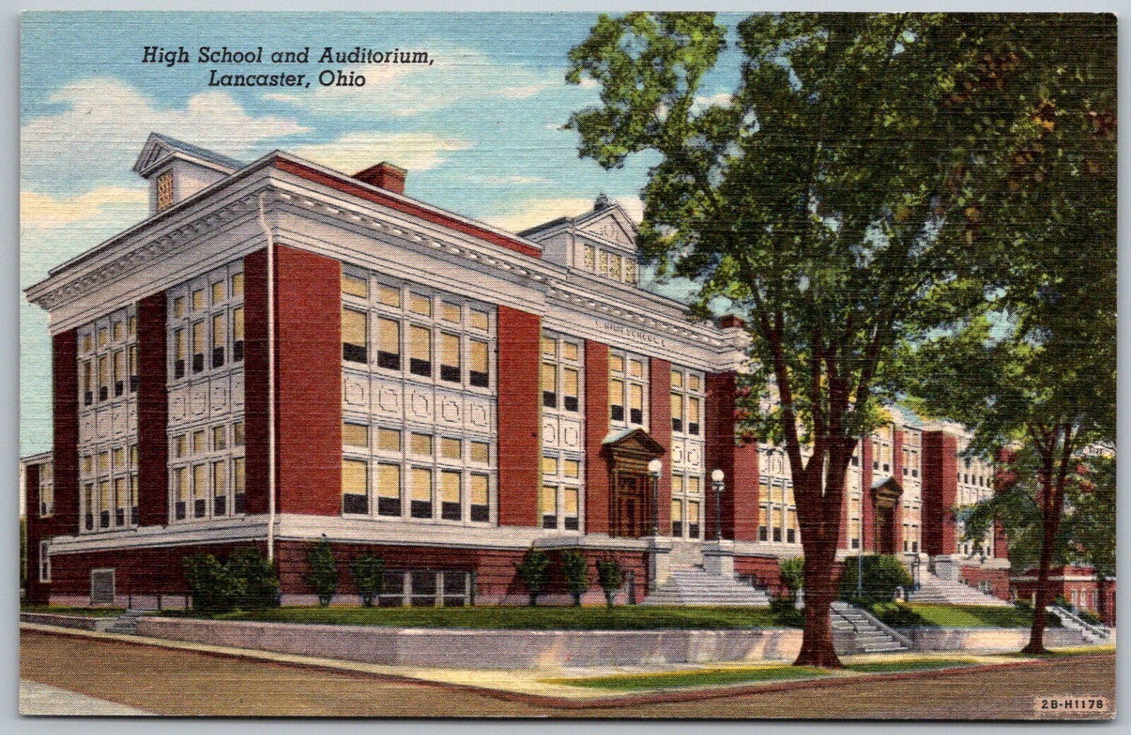 Lancaster Ohio 1940s Postcard High School And Auditorium