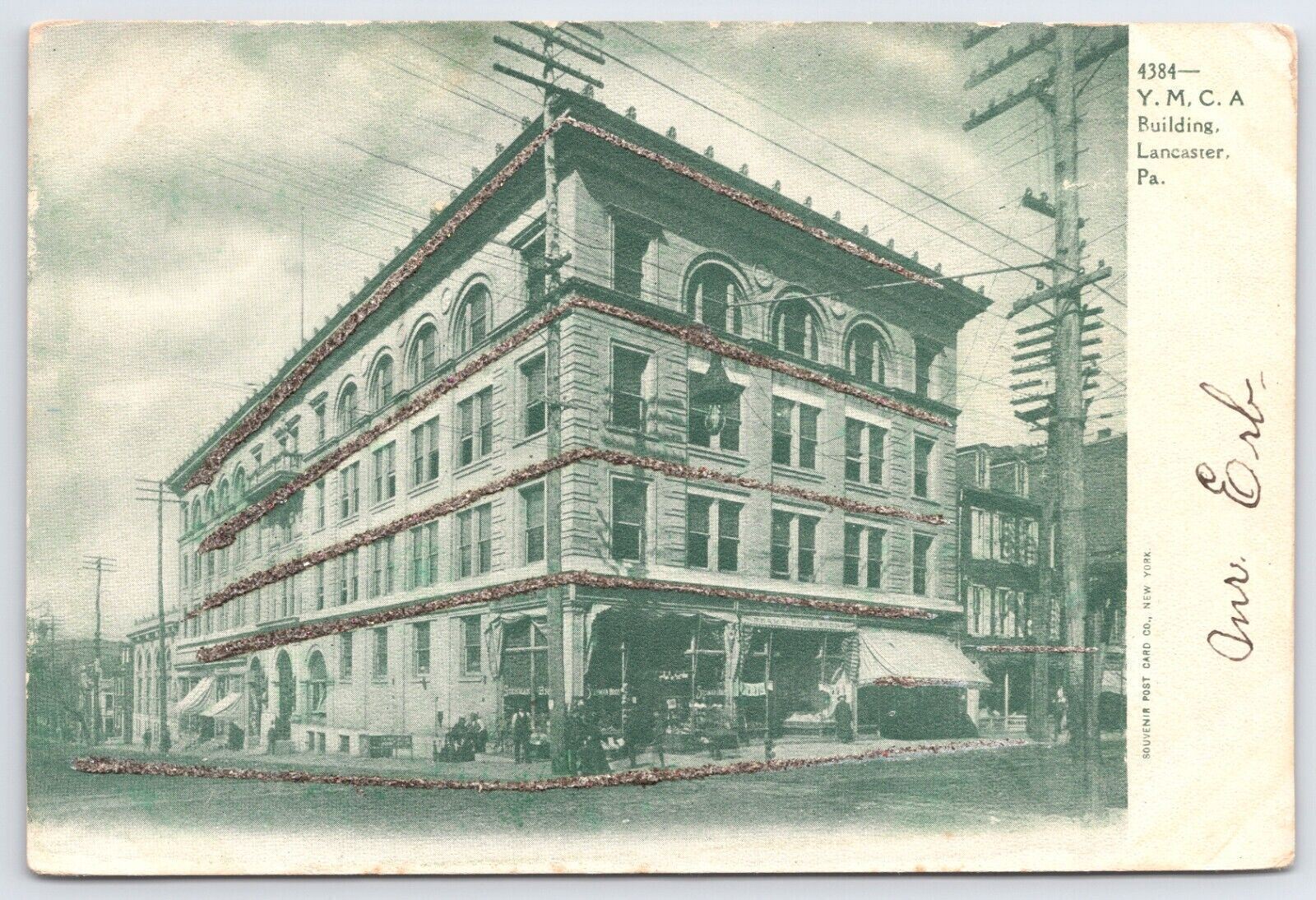 Lancaster, Pennsylvania Y.M.C.A. Building Corner Street View Glitter Postcard