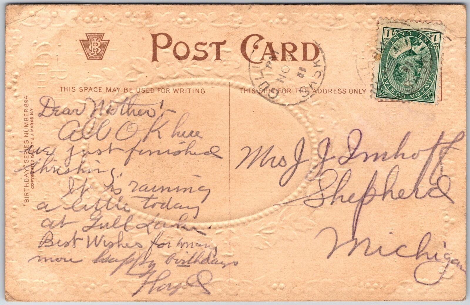 Condition: See images for condition. Please take a careful look at the scans, and email us with any specific Landscape Lake Inside The Flower Oval Bordered Birthday Wishes Postcard