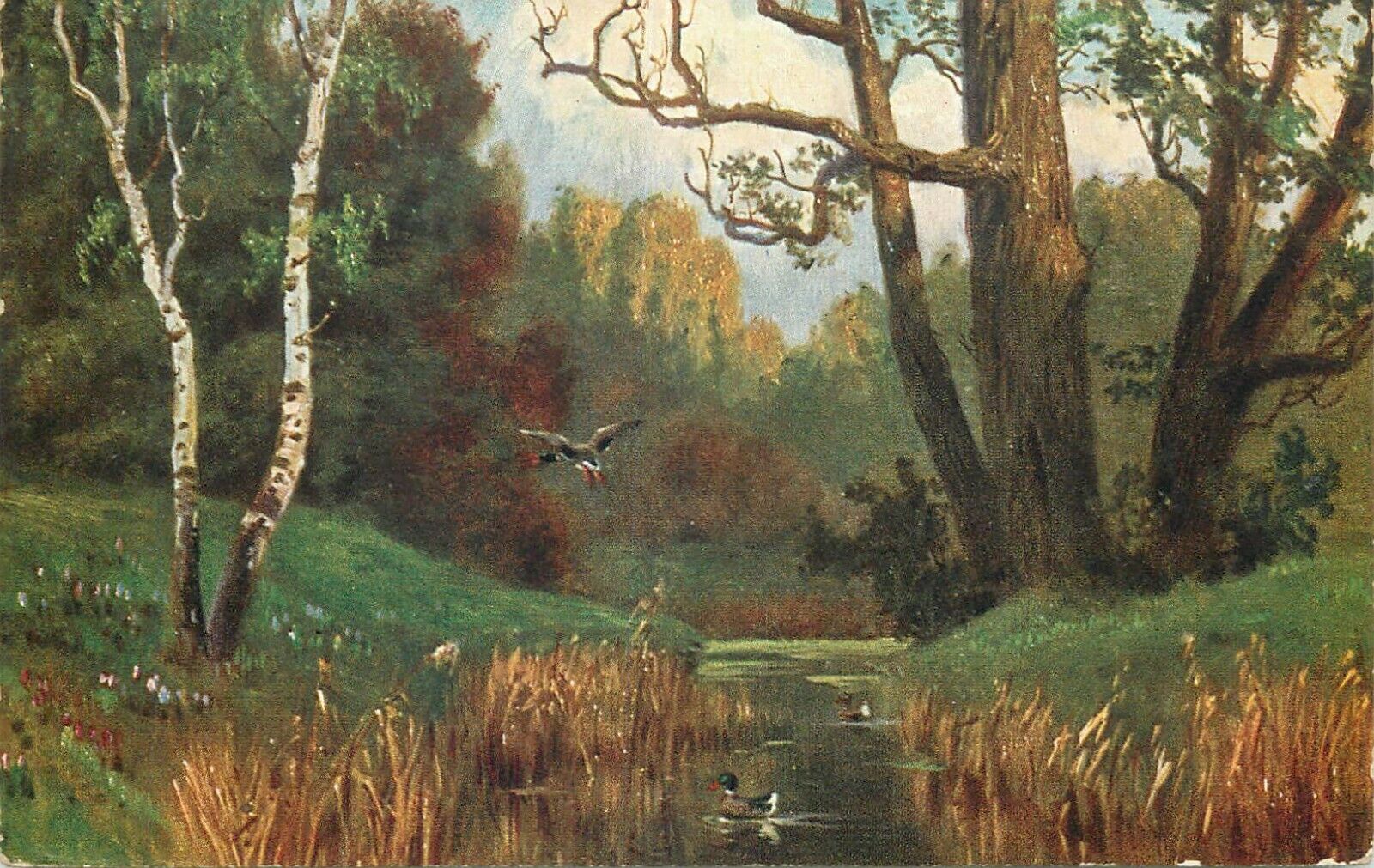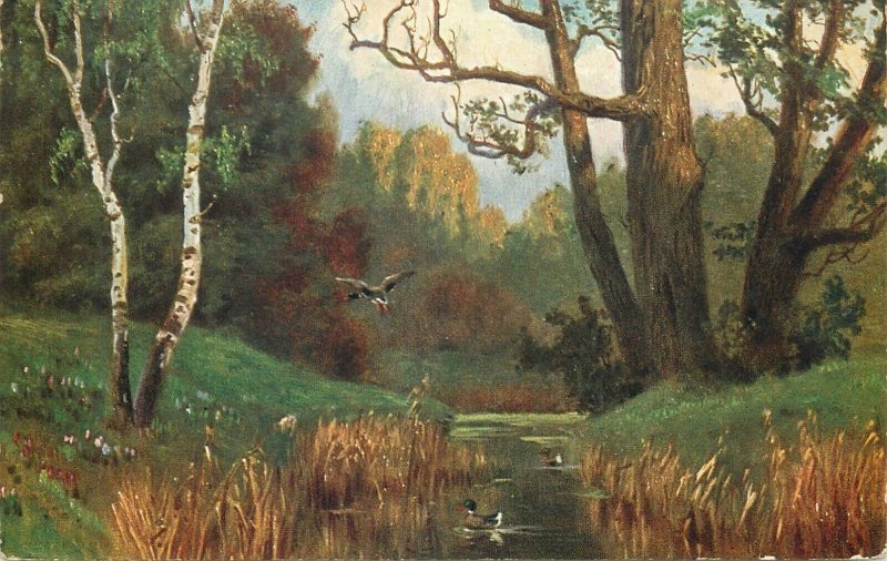 Landscape with ducks Germany early postcard