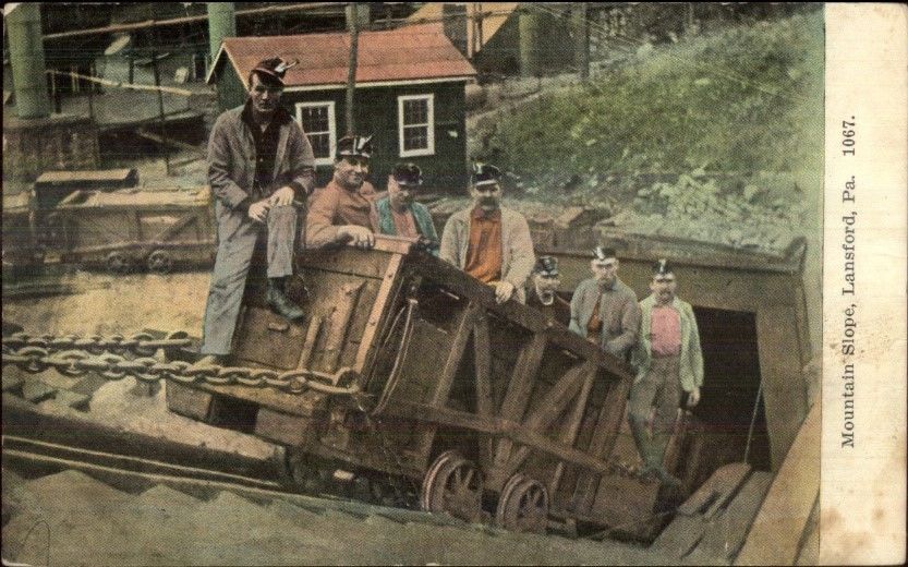 Lansford PA Coal Mining Miners on Car c1910 Postcard
