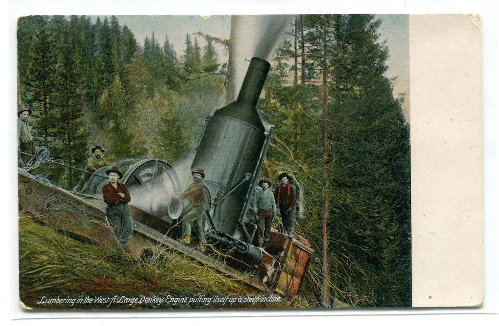 Description: Large Donkey Engine Logging Lumber postmarked Bellingham Washington 1909 postcard