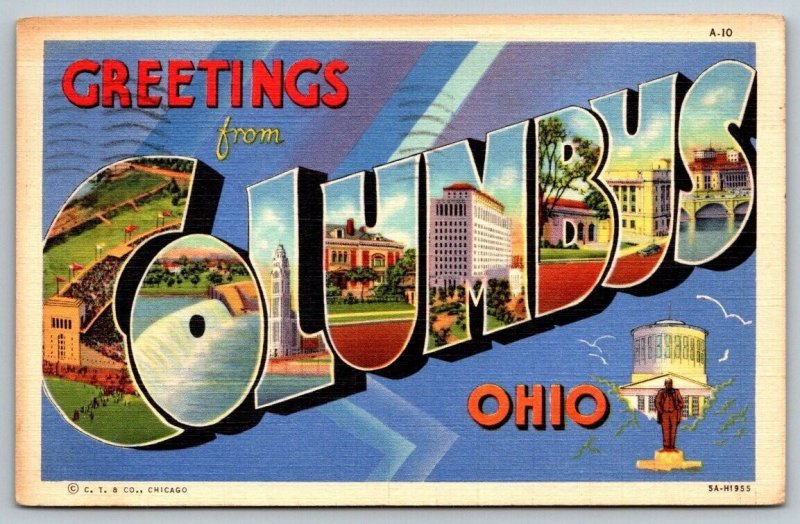 Large Letter Greetings From Columbus Ohio 1941 Postcard