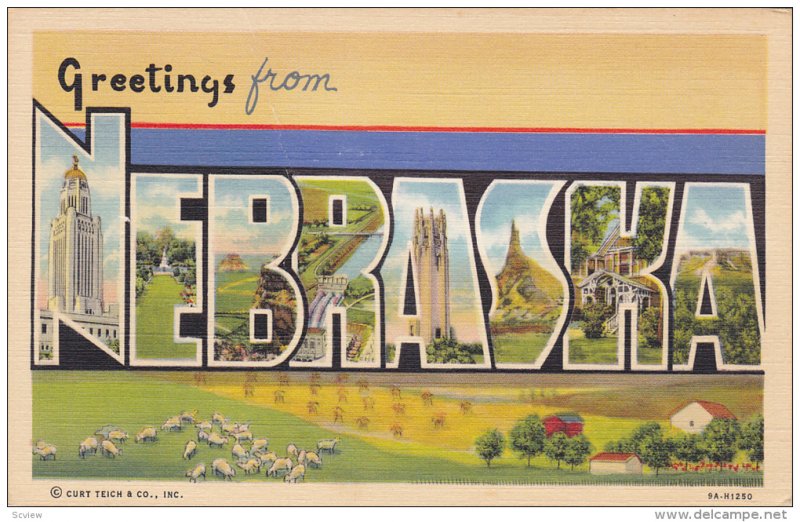 Large Letter Greetings , "NEBRASKA" , 30-40s