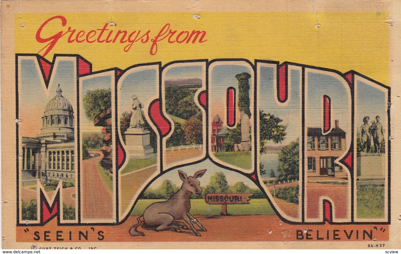 Large Letter MISSOURI, 30-40s :: Postcard 3.5 by 5.5 Linen