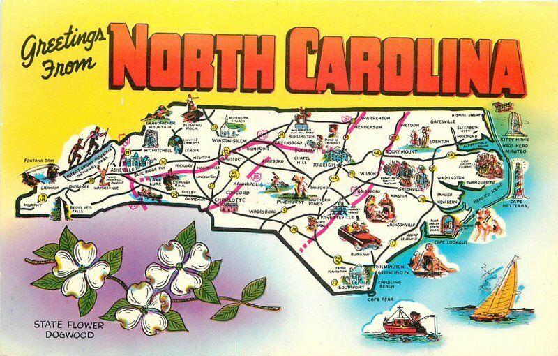 Large Letters 1950s Map Attractions North Carolina Postcard Morton 482