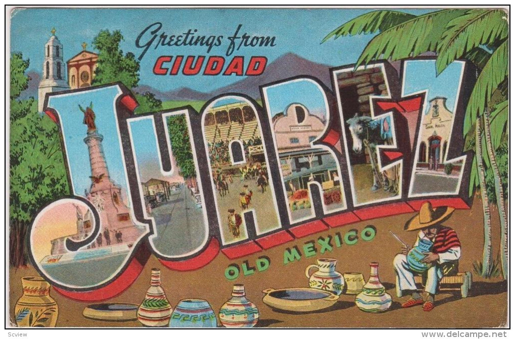Large Letters "JUAREZ", Mexico, PU1948 :: Postcard , 3.5 by 5.5 , Linen , VG+