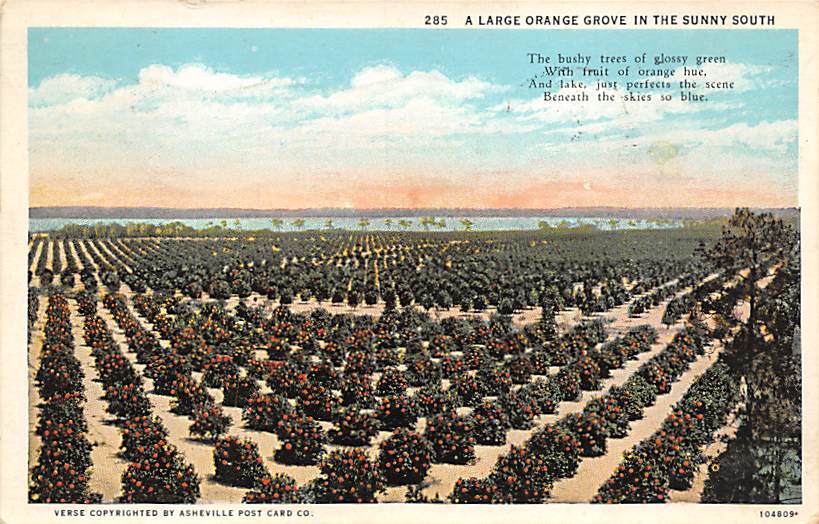 Large Orange Grove Florida, USA Fruit Assorted Postcard 1932,
