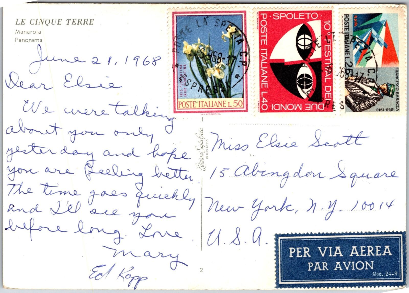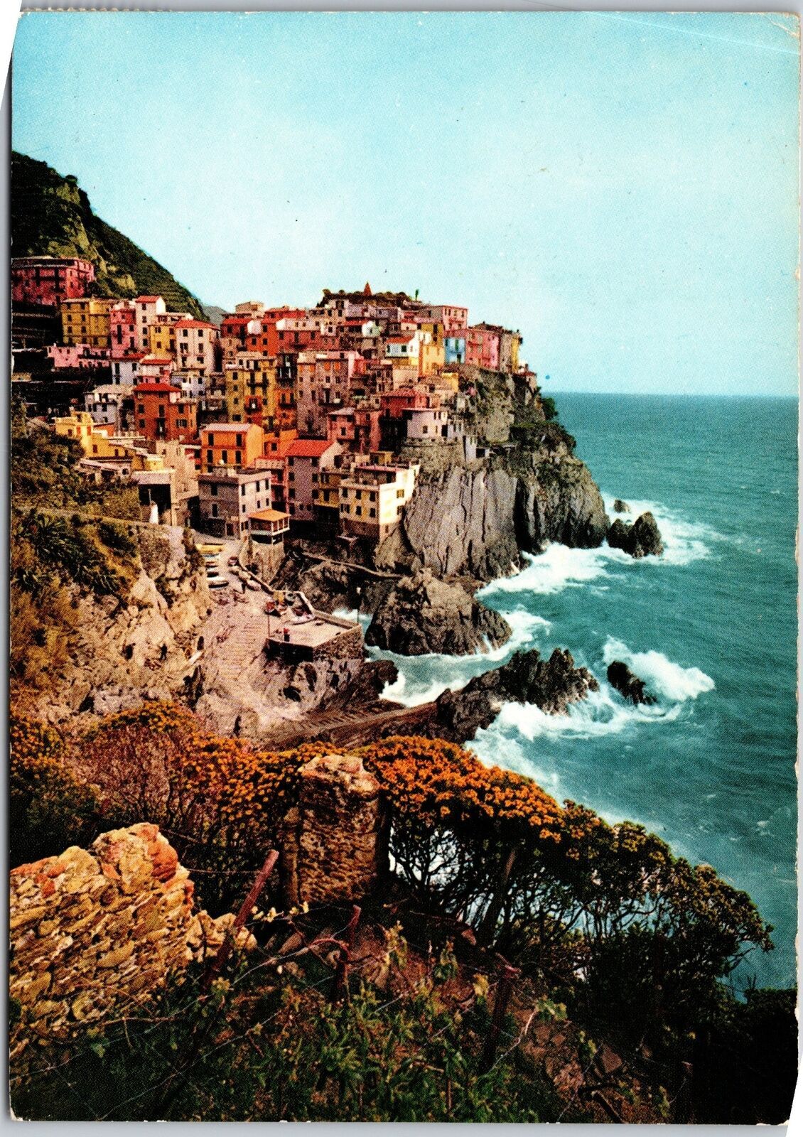 Le cinque terre panorama buildings on cliffs mountains ocean breeze postcard
