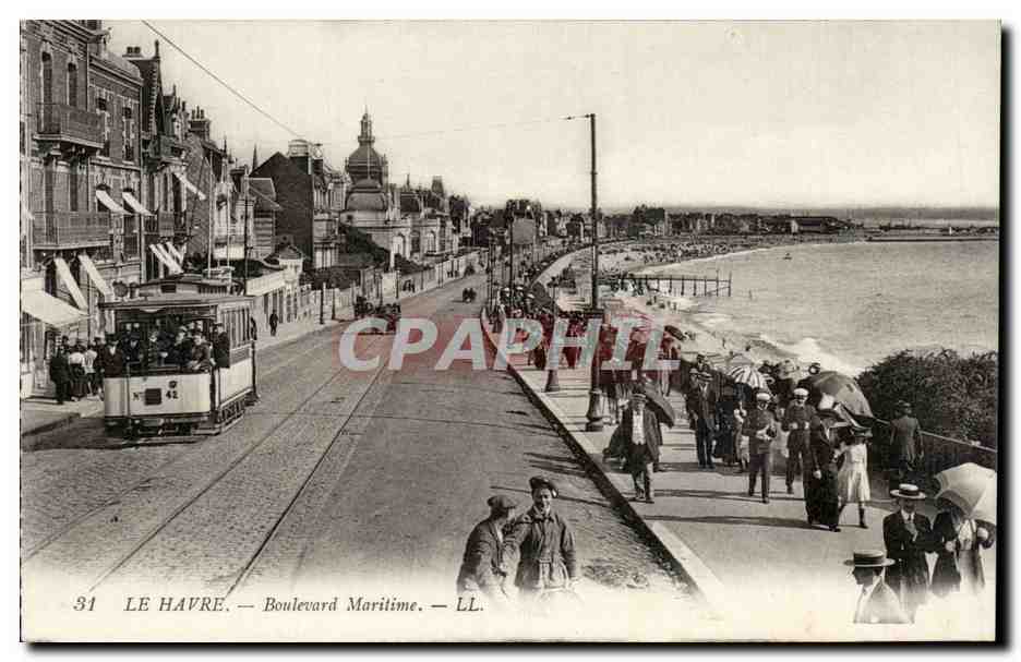 Le Havre - Boulevard Maritime - tram - Old Postcard