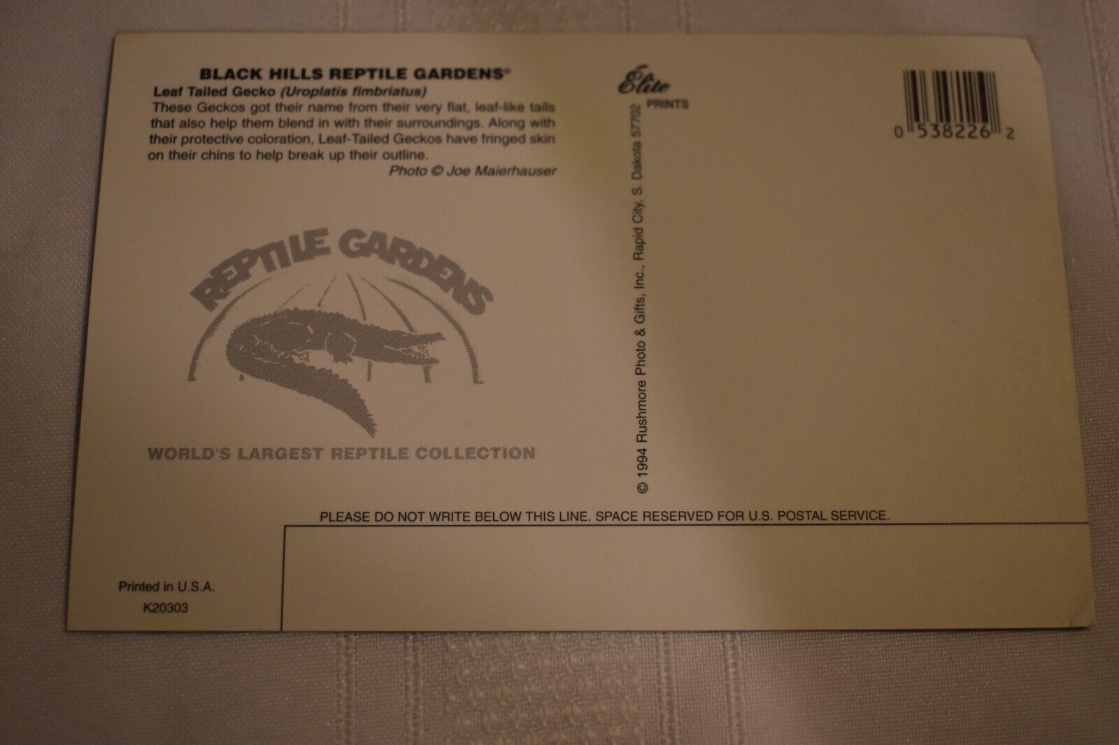Condition: Pre-owned. Unposted postcard. As shown. See photos. Leaf Tailed Gecko Black Hills Reptile Gardens South Dakota Postcard, 1994, Photo by Joe Maierhauser, Rushmore Photo & Gifts, Made in USA, K20303 Unpost ... Read More