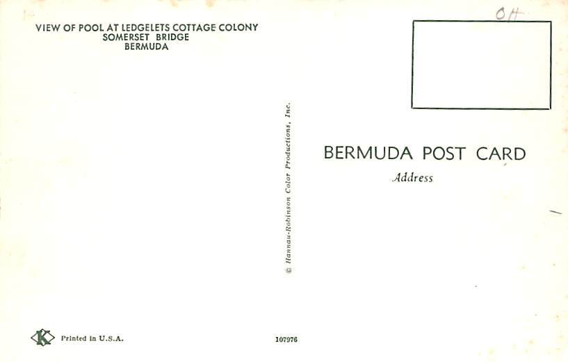 Ledgelets Cottage Colony Somerset Bridge Bermuda Postcard Postal Date: {{Product Field 4 ( Postal Used, Unused)}} Grade: 1 Size: Regular Size Postcard - approximately 3 1/2 inch x 5 1/2 inch (9 CM x 14 CM) Gra ... Read More