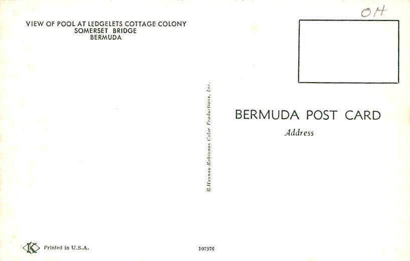 Ledgelets Cottage Colony Somerset Bridge Bermuda Postcard Postal Date: {{Product Field 4 ( Postal Used, Unused)}} Grade: 1 Size: Regular Size Postcard - approximately 3 1/2 inch x 5 1/2 inch (9 CM x 14 CM) Gra ... Read More