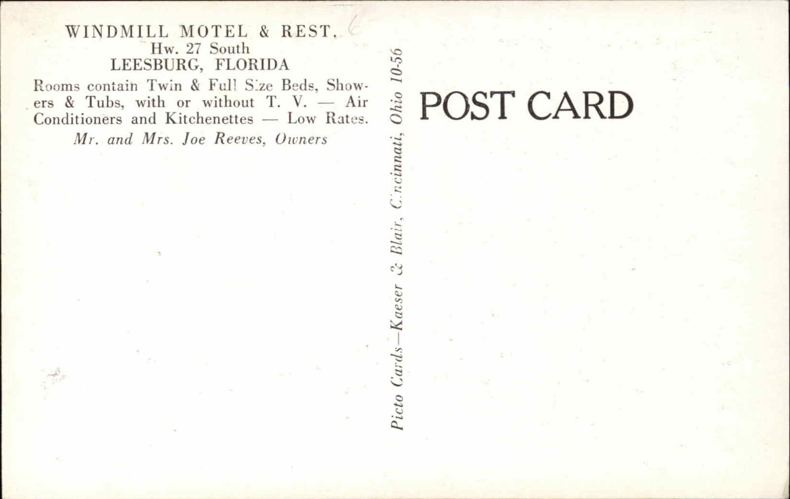 Leesburg Florida FL Windmill Restaurant Motel Postcard