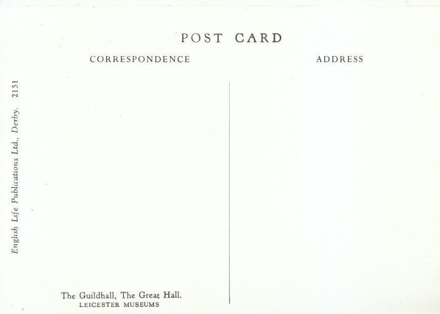 Mo's Postcards Postcard Description: Leicestershire Postcard - The Guildhall - The Great Hall Genealogy Information: Defects: Postage & Payment: For U.K residents the quoted P & P fee is for any number of postcards purchased at one time. Happy to quote for non UK residents. For multiple purchases please wait for an invoice Listing and template services provided by inkFrog