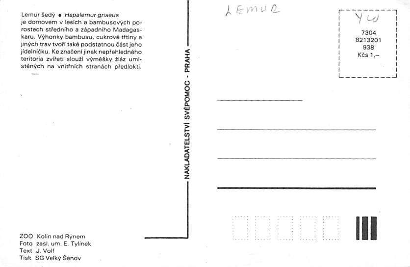 Lemur Sedy Monkey Postcard unused,
