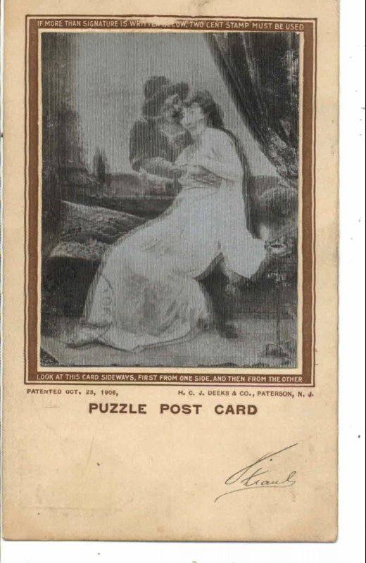 Lenticular Puzzle Romance Pretty Woman c1910 HCJ DEEKS Postcard
