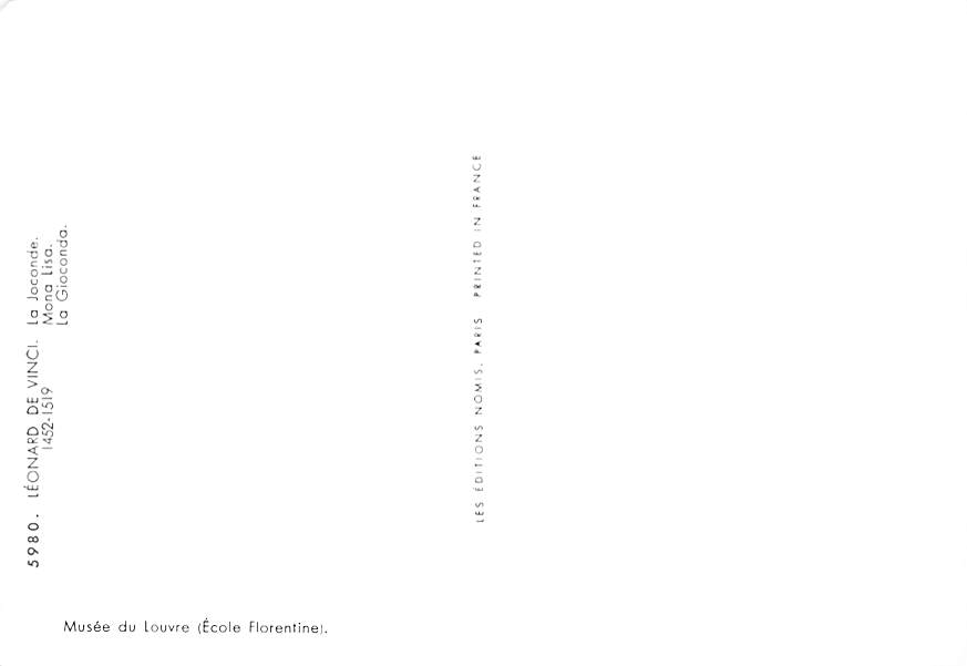 Leonard De Vinci - Mona Lisa Grade: 1 Category: Continental Size Postcard, Approx 4 in x 6 in (10 cm x 15.25 cm) Product Size: Continental size: 4X6 inches (10.5 cm x 15 cm) Grading Scale: Grade 1 = Perfect co ... Read More