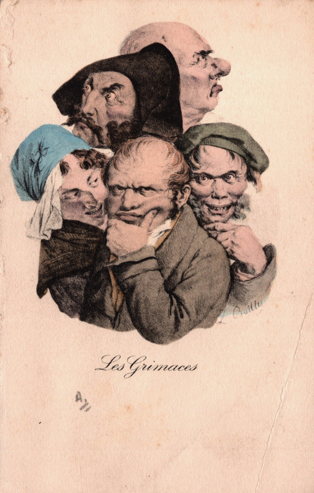 Les Grimaces Portrait Old Men Faces Vintage Postcard C378